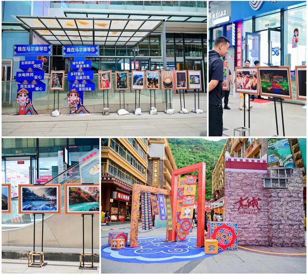 摄影作品展示区沿街布设“文化长廊”,展出大量有关马尔康自然风光与人文风情的摄影佳作。每幅作品都配有作者注解与创作灵感,吸引不少摄影爱好者和文旅达人驻足细看、合影留念,引领游客“用镜头读懂马尔康”。